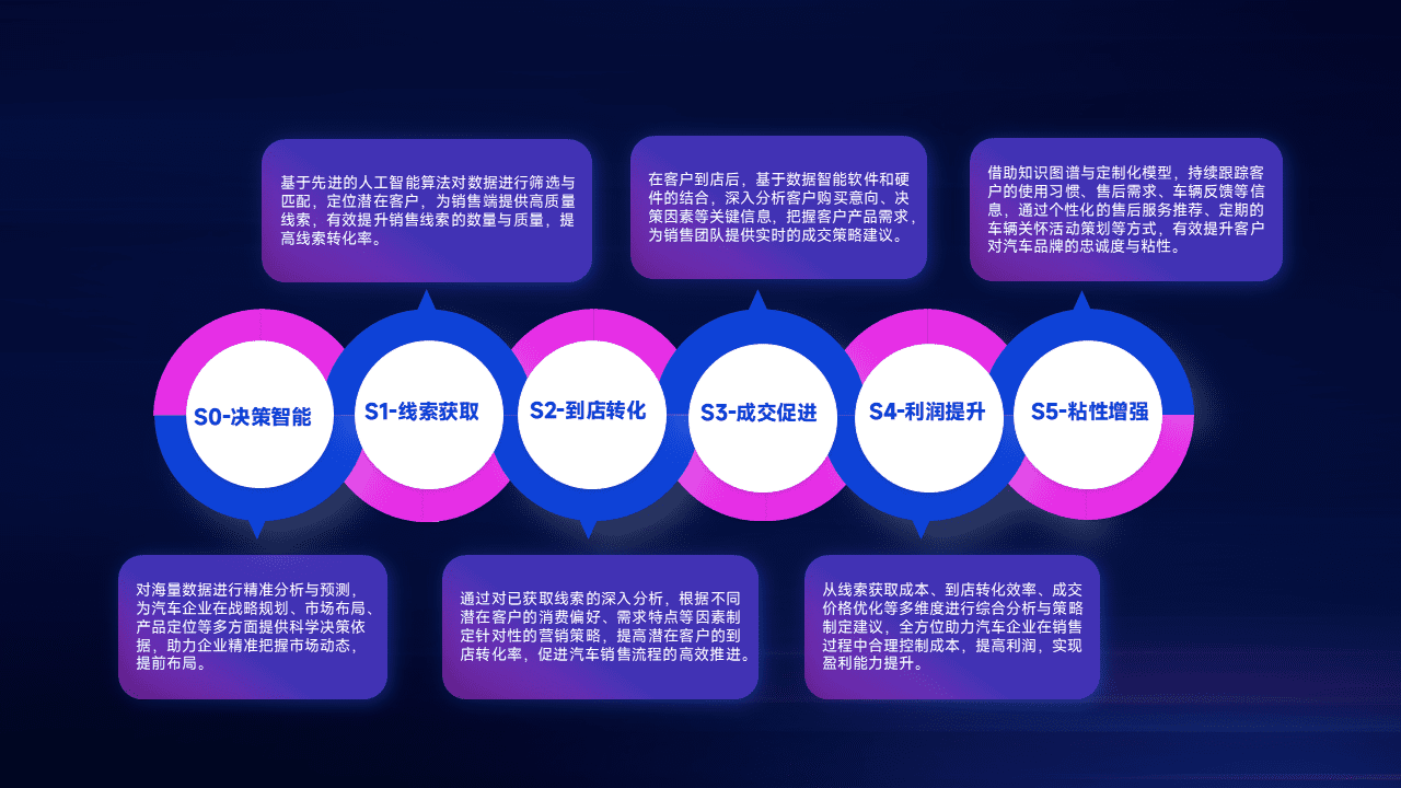 基于销售转化漏斗的薄弱环节,,,,为客户提供数据+模型+运营的智能应用,,,实现销售业绩的提升;推动线索管理全链路的精细化管理和运营。。。